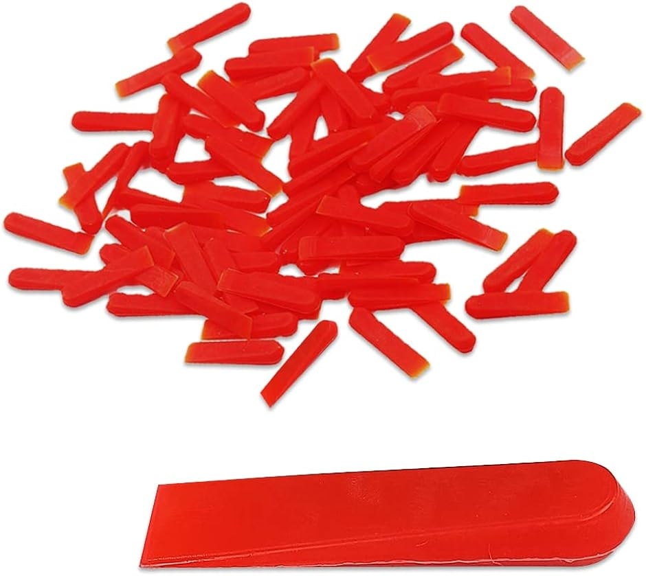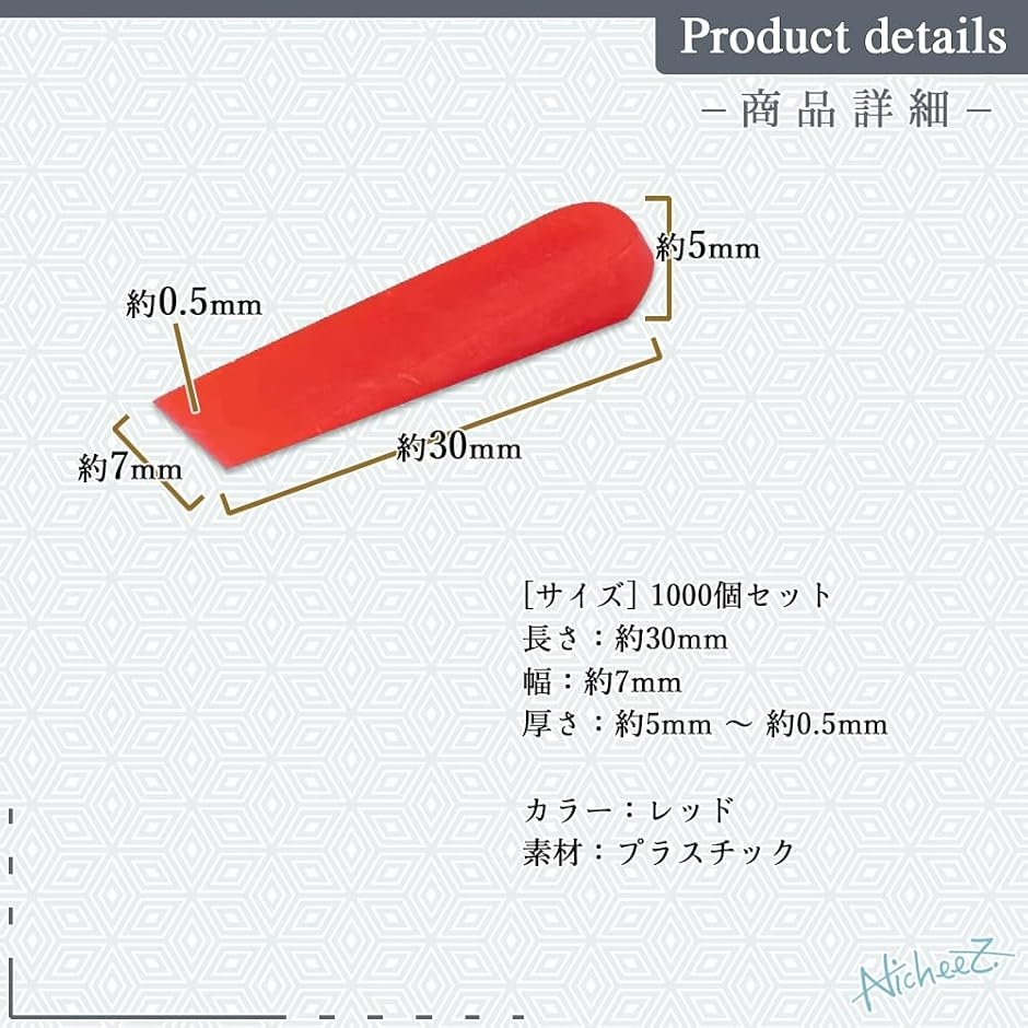 「商品内容」タイルスペーサー セット数:1000個 素材:プラスチック サイズ:厚さ/約0.5mm〜5mm 幅/約7mm 長さ/30mm カラー:レッド