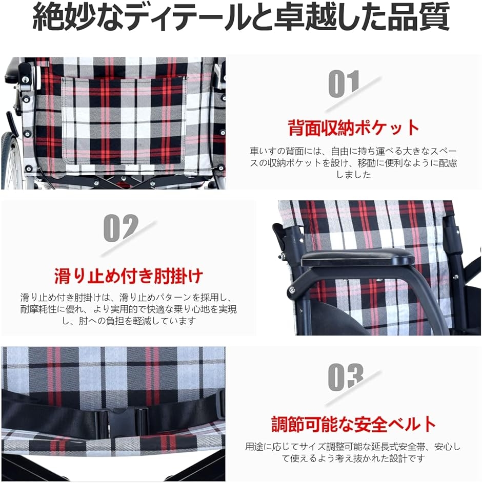 ・?軽量で耐久性のある調節可能な棚: 組み立て済みの車椅子フレームは、軽量で耐久性のあるアルミニウム製で、100kg を安全に支えられ、折りたたみ式車椅子には、4段調節可能なペダルが付き、簡単自由に上下を調整でき、患者の快適性を高めます。