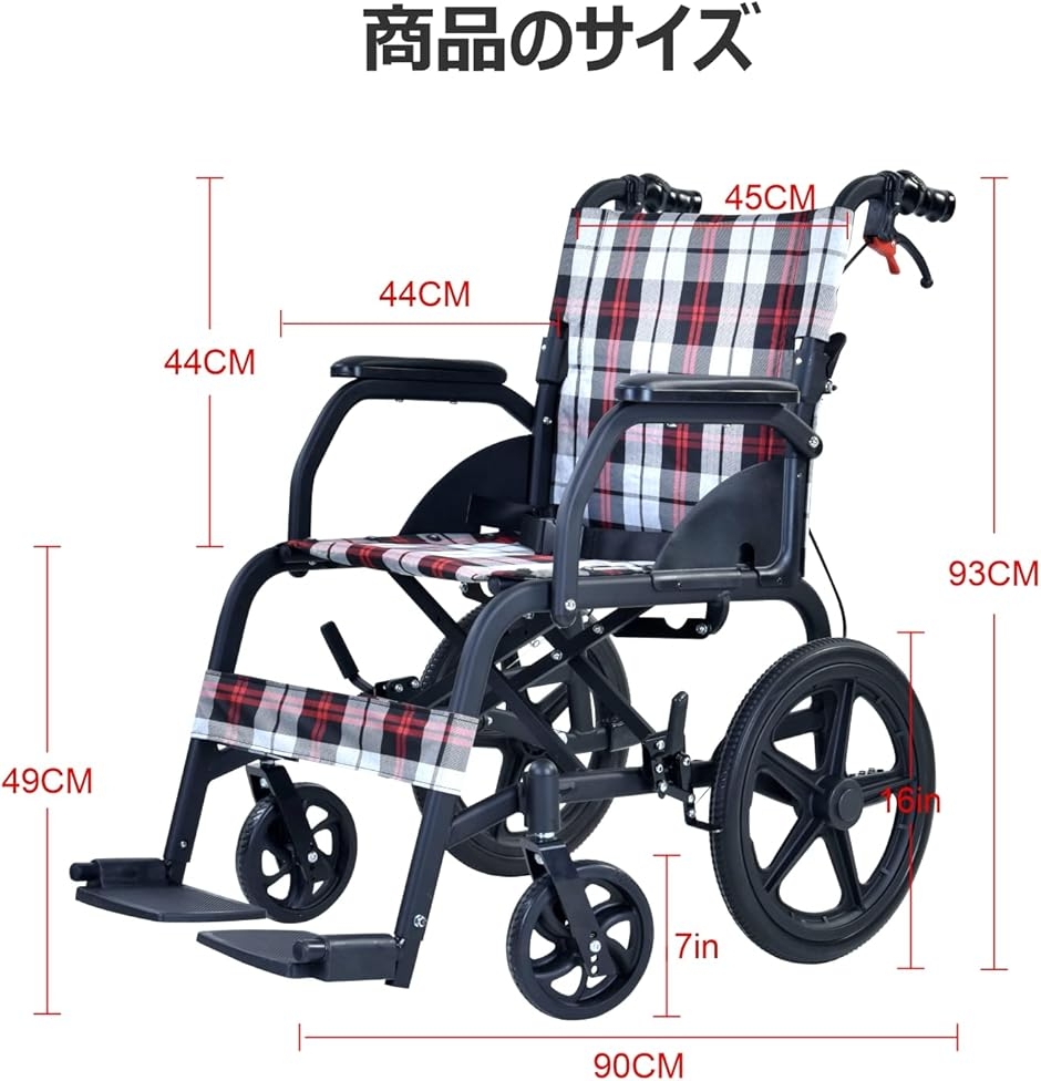 ・?車椅子サイズ:幅61cmx長さ90cmx高さ93cm。