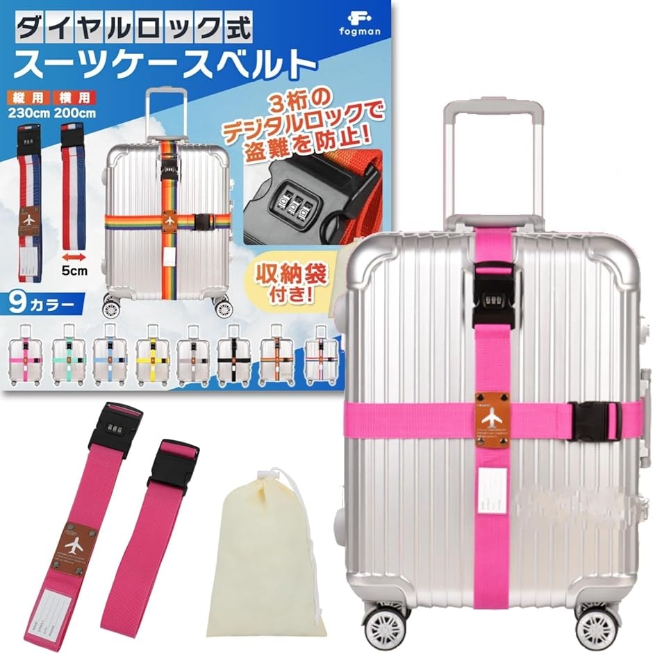 | 商品名 | スーツケースベルト 鍵付き ロック 十字 3桁ダイヤル式 収納袋付き 2本セット ピンク |