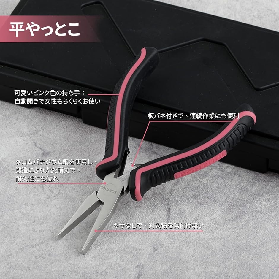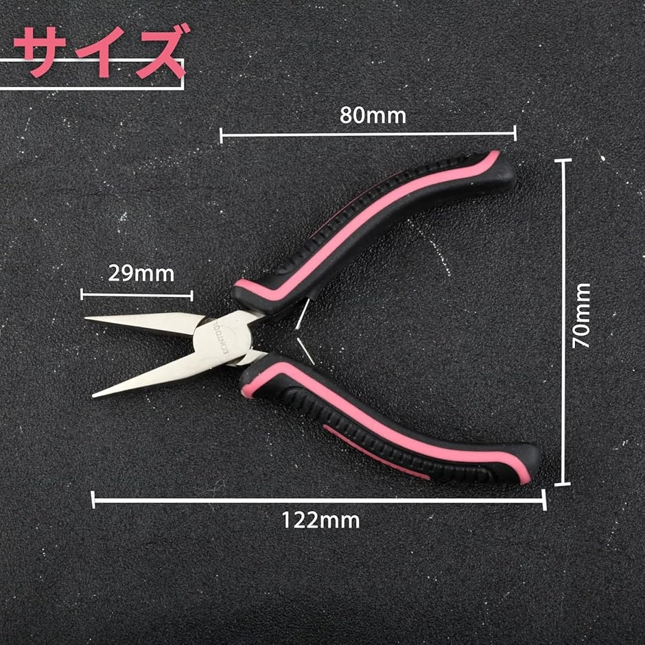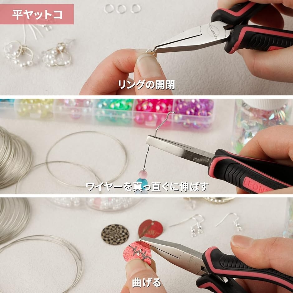 用途:カシメ玉をつぶしたり、丸カンやCカン、ピンを開いたり閉じたりできます。