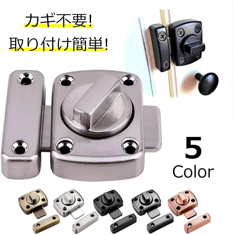 ・鍵穴がなく、回転式で施錠できる取り付け簡単な内鍵用ドアロックです。