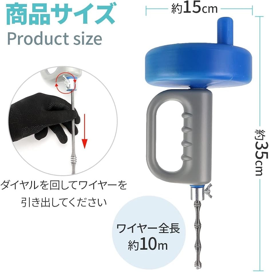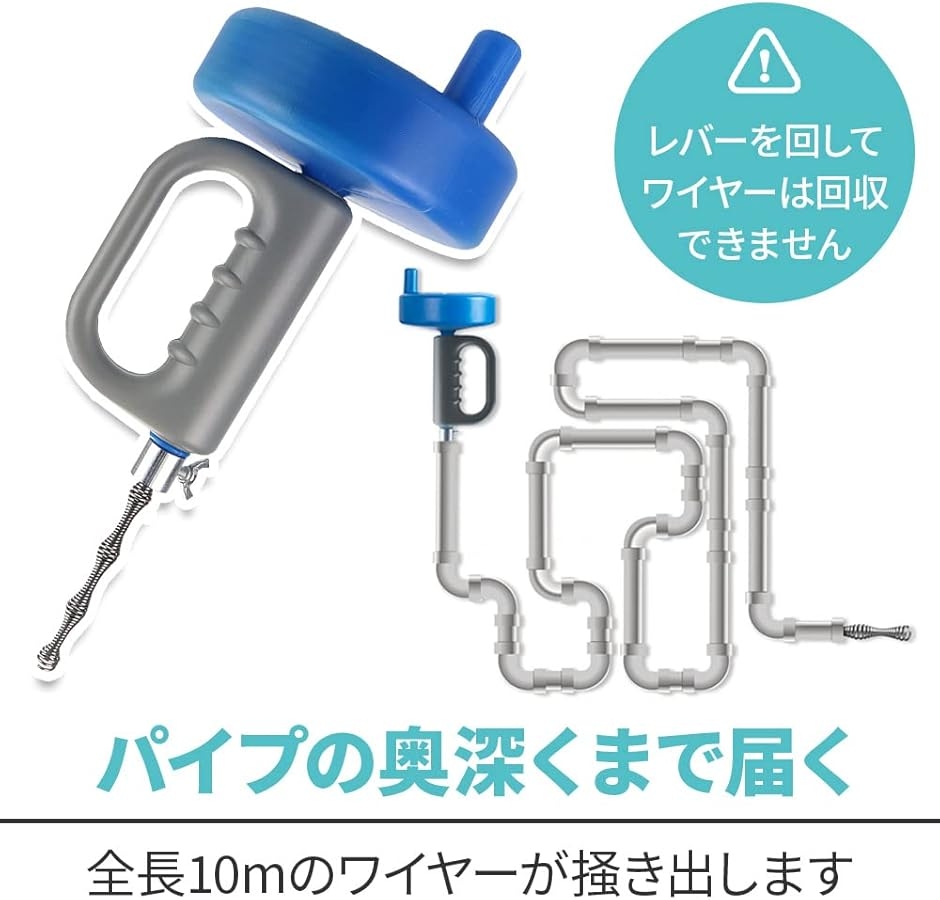 「セット内容」ワイヤー式パイプクリーナーx1点 「サイズ(約)」ワイヤー全長:10m ハンドル:15cmx35cm