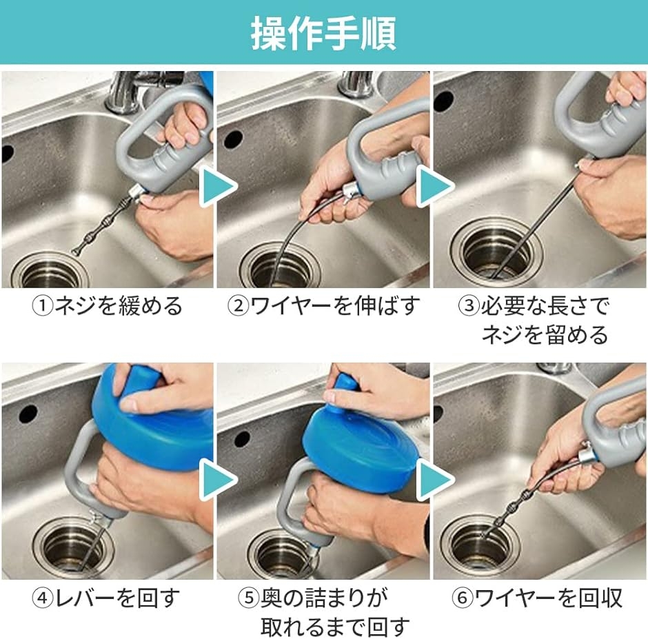 ゴッソリ絡めとる4段階スプリング構造で効率よく詰まりの原因を解消できる優れ物です。
