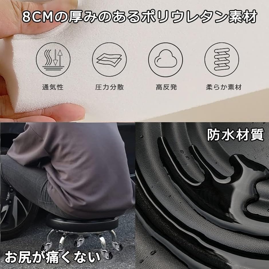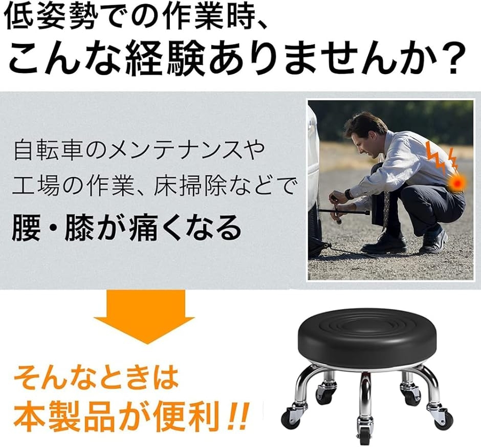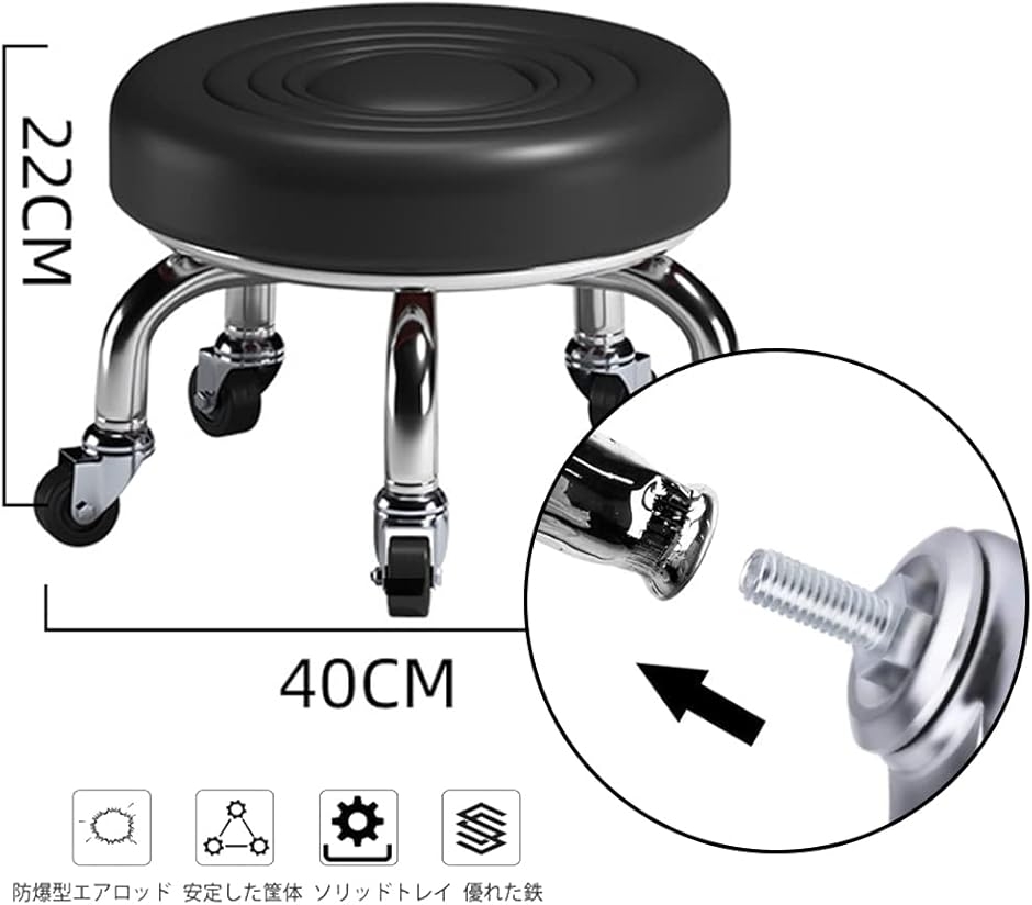 | 商品名 | ロースツール リビングルームスツール キャスター付き 丸椅子 低床椅子 自動車整備 低所作業 360°スイベル低い 高さ:22cm |