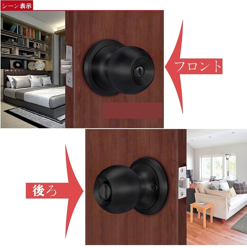 | 商品名 | 堅塁金物 ドアノブ 円筒錠 トイレ室内 寝室 玄関 部屋 屋外 浴室に適用 キーなし30-50黒 |