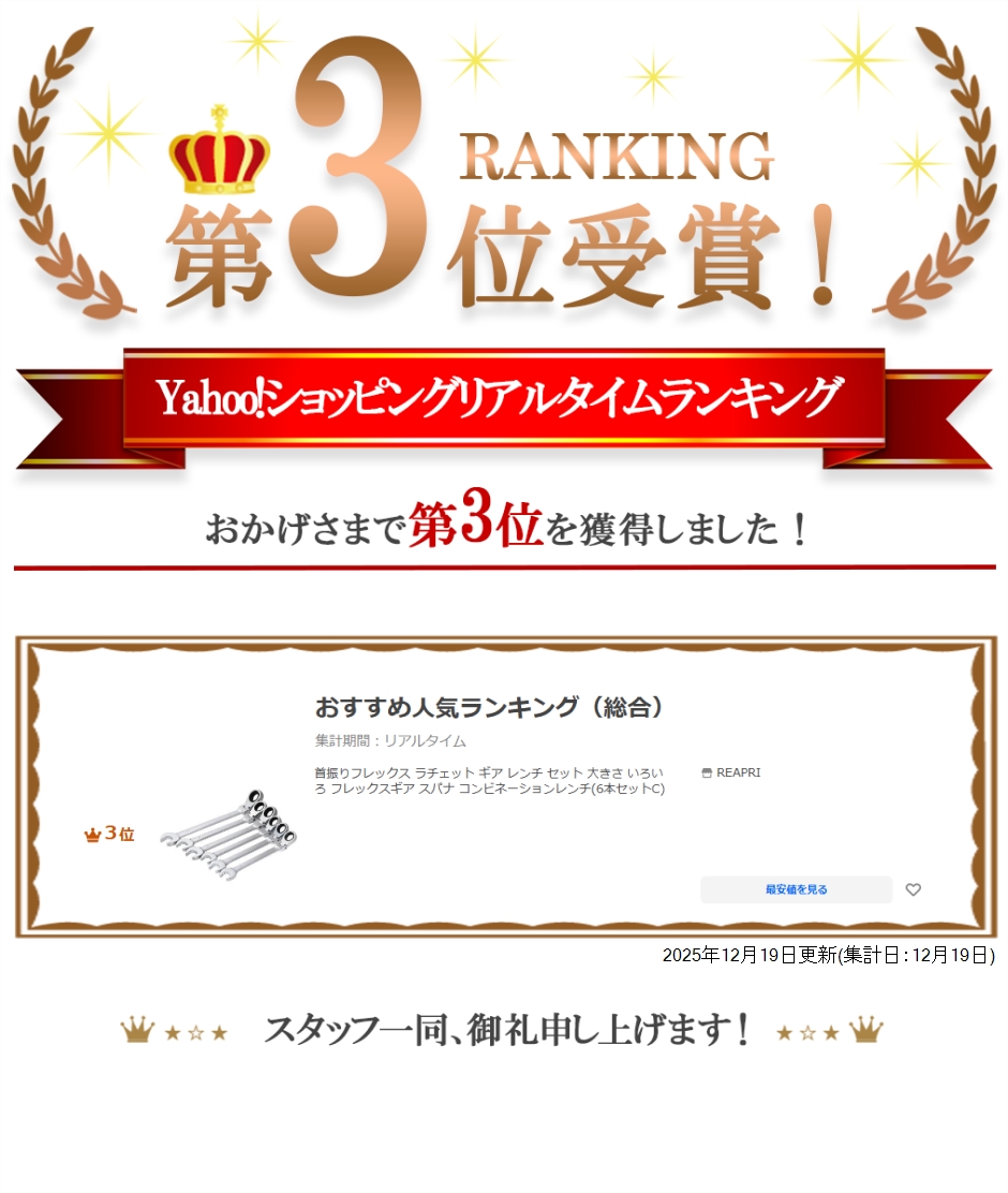 | 商品名 | 首振りフレックス ラチェット ギア レンチ セット 大きさ いろいろ フレックスギア スパナ コンビネーションレンチ ラチェットレンチ 工具セット |