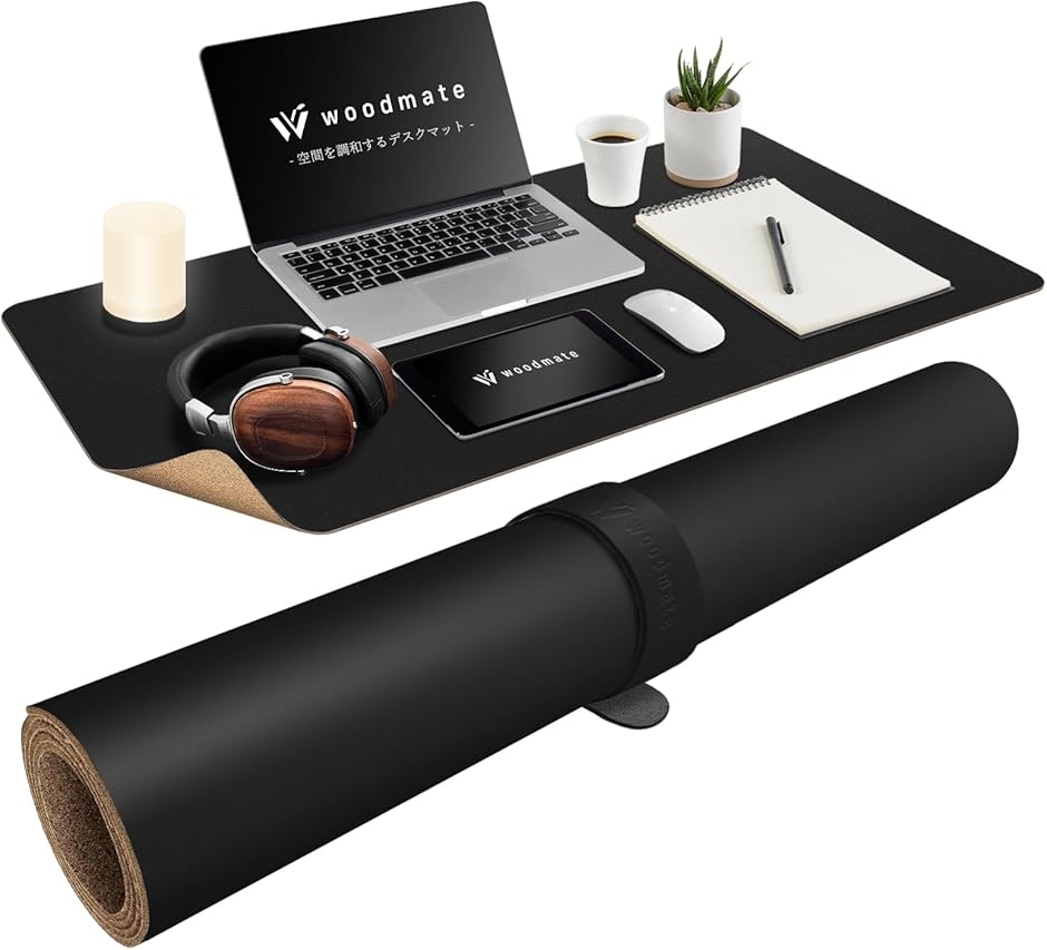 | 商品名 | Woodmate 空間を調和するデスクマット 空間デザイナー監修 レザー 裏面コルク デスクパッド ブラック 90cm x 43cm |
