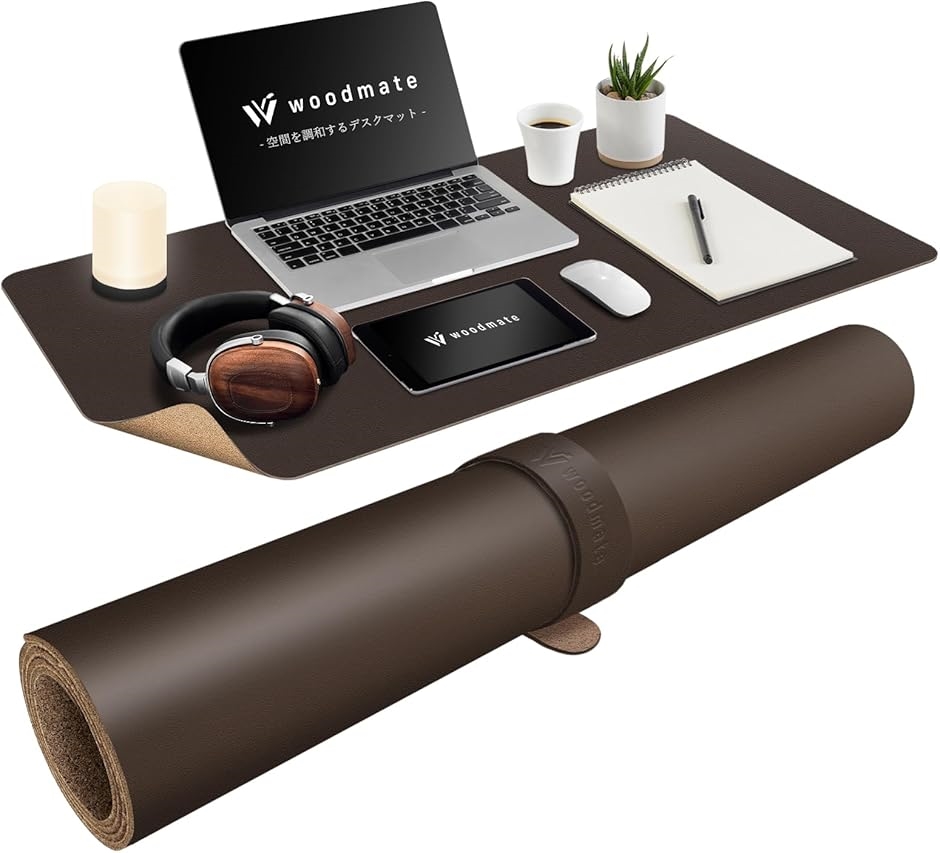 | 商品名 | Woodmate 空間を調和するデスクマット 空間デザイナー監修 レザー 裏面コルク デスクパッド ブラウン 90cm x 43cm |