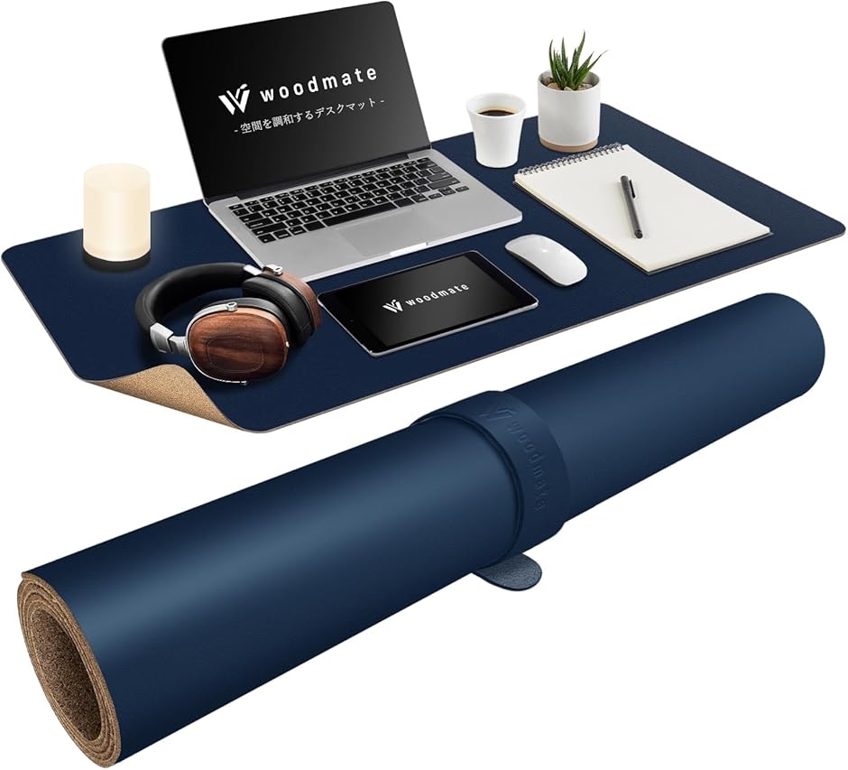 | 商品名 | Woodmate 空間を調和するデスクマット 空間デザイナー監修 レザー 裏面コルク デスクパッド ダークブルー 90cm x 43cm |