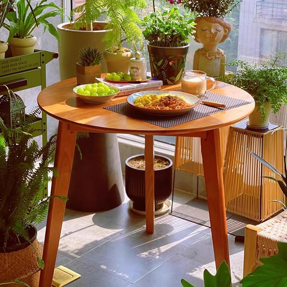 「ラウンドテーブルのメリット」・省スペースでお部屋スッキリかどがない分スーペスを無駄なく活用できるため、お部屋を広く見せてくれます。