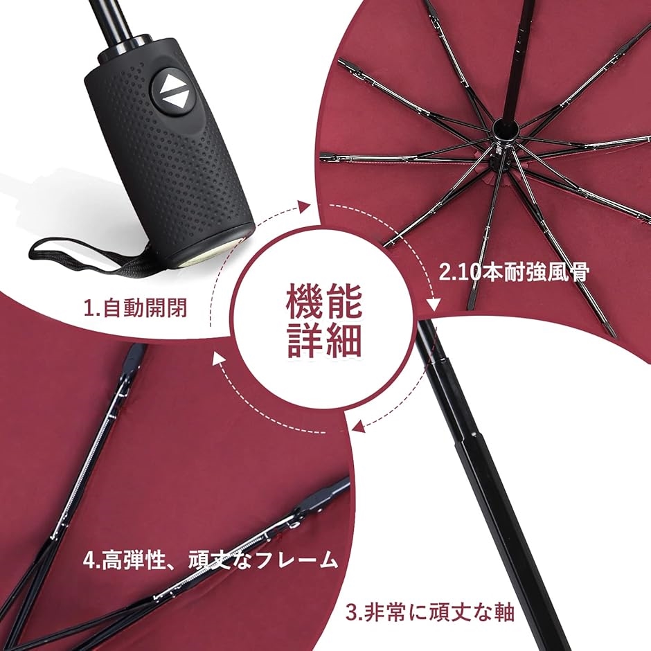 | 商品名 | 折りたたみ傘 ワンタッチ自動開閉 10本骨 雨晴兼用 収納袋付き |