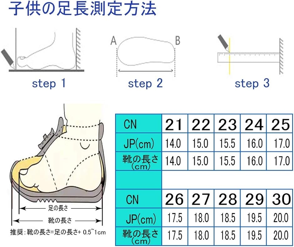 サイズ選択:サイズ=足長+0.5〜1.0cm