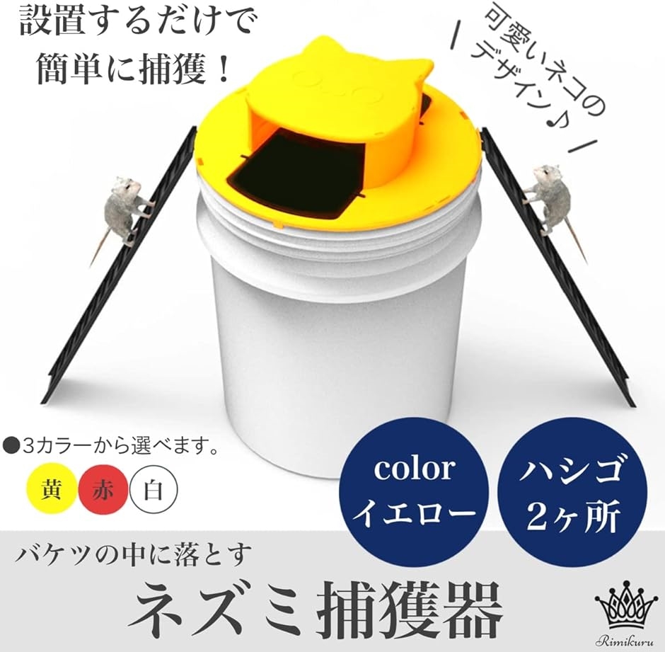 ・3カラーから選べる2箇所のハシゴと2つのペダルからネズミを捕獲できる:こちらのネズミ捕獲器は2箇所のハシゴと2つのペダルでバケツの中に落ちる仕様となっておりますので、1つの導線だけでなく2つの導線からネズミを捕獲することができます。