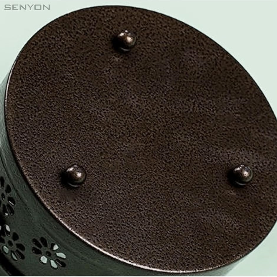 ・鉄製でどっしりした重さがあり、蓋と取っ手付きのオシャレな蚊取り線香ホルダー。