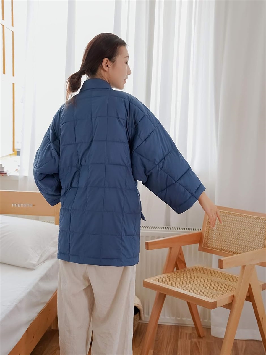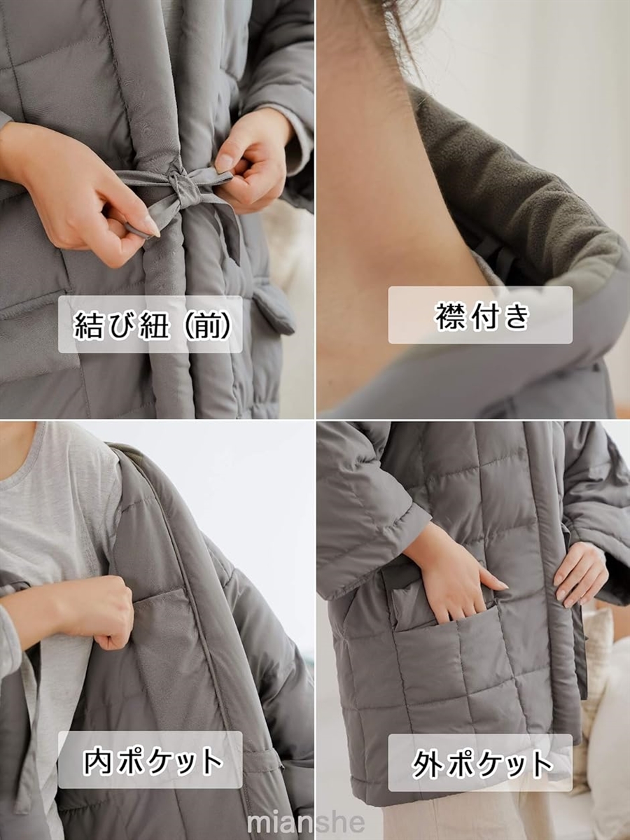 はんてんには、低アレルギー性のmiansheの先端のファイバーフィルが詰められています。