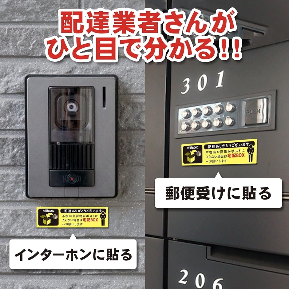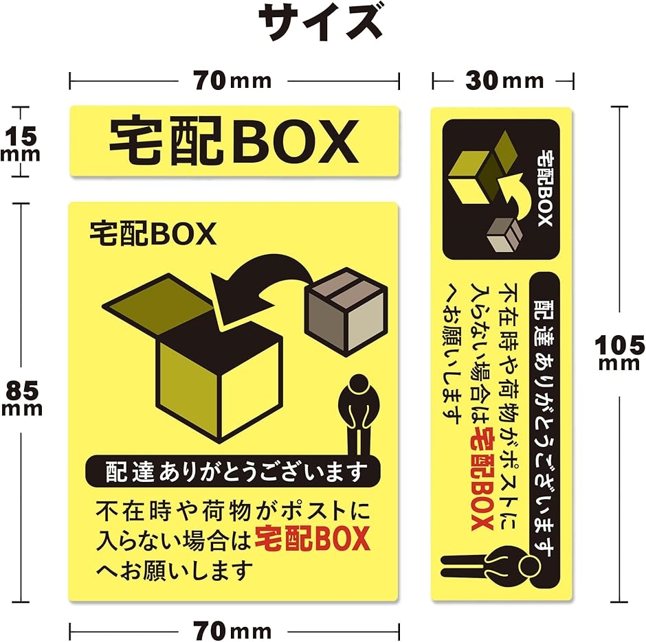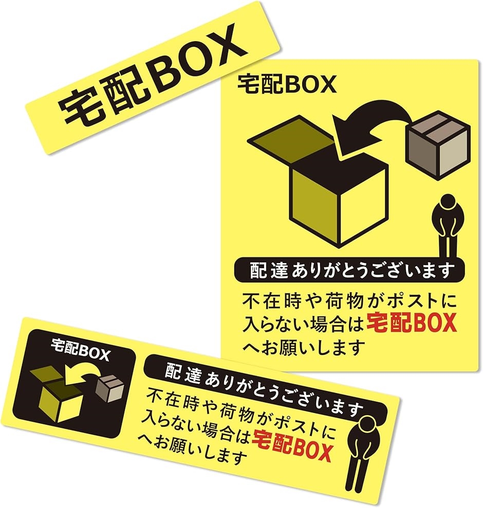 | 商品名 | 置き配 宅配ボックス 宅配BOX ステッカー シール 宅急便 郵便 配達 不在 玄関 耐水 耐候 日本製 3種セット/イエロー |