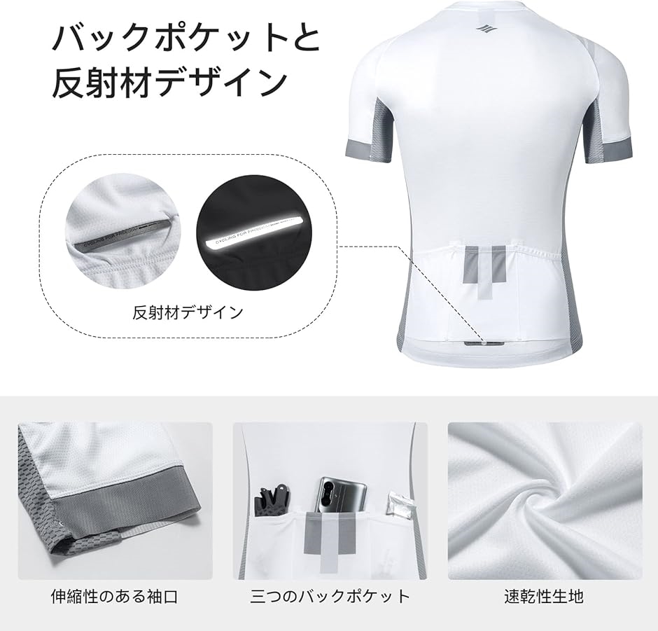 「反射材」反射材付きで、夜間走行時の安全性を高めますサイクルジャージです。