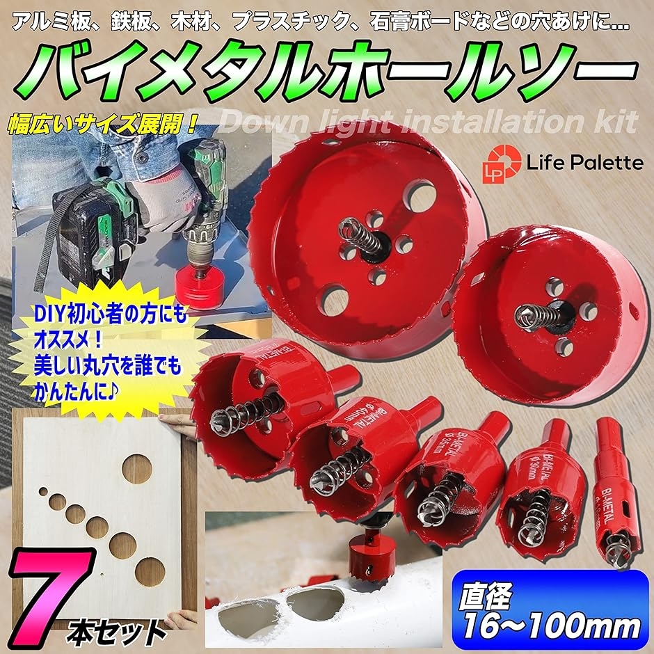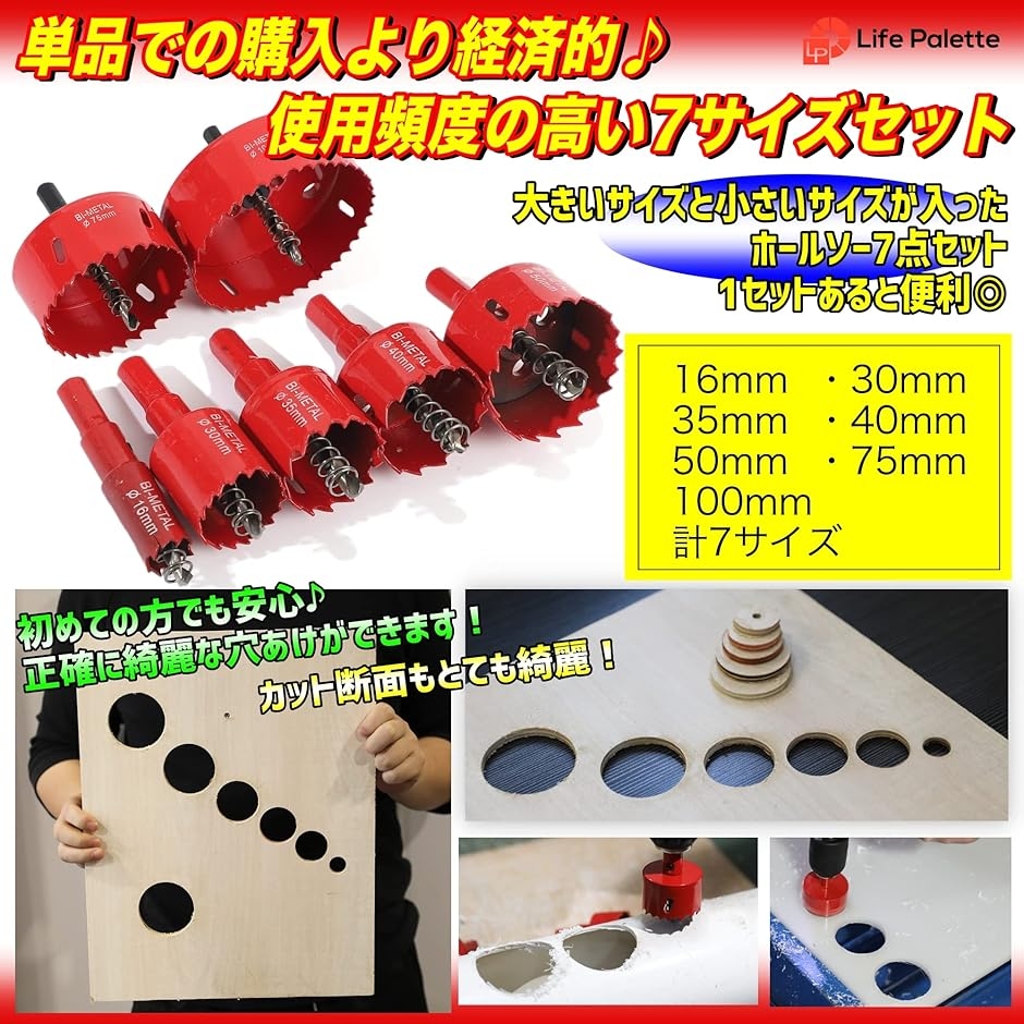 バイメタルホールソー 直径16〜100mm 増量7本セット 16mm 30mm 35mm 40mm 50mm 75mm 100mm
