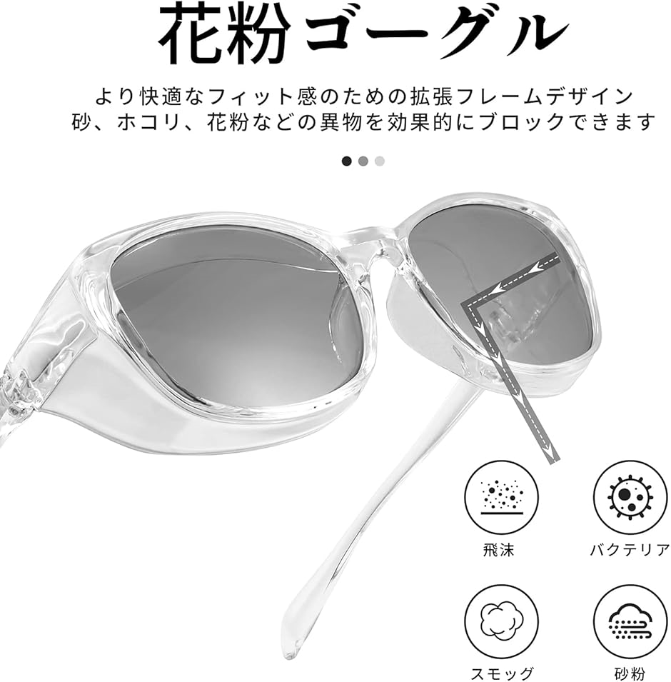 ・「花粉対策 」花粉やホコリからやさしく目をガードします、花粉やホコリをしっかり防ぐゴーグルタイプの花粉メガネです