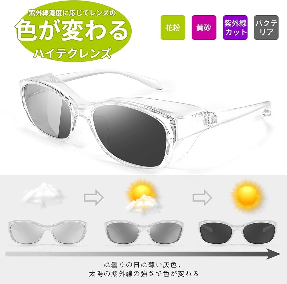 ・「UVカット」花粉やホコリの侵入を防ぐ以外にも、UVカット機能で紫外線からも目をガードします。