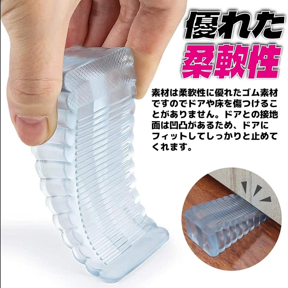 「優れた柔軟性」素材は柔軟性に優れたゴム素材ですのでドアや床を傷つけることがありません。