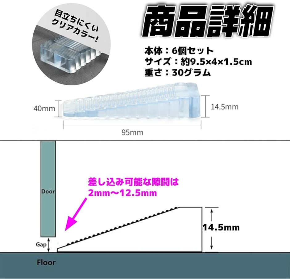 | 商品名 | ドア ストッパー 引き戸 スライド ロック 開き戸 ペット 押し入れ 透明 6個セット |