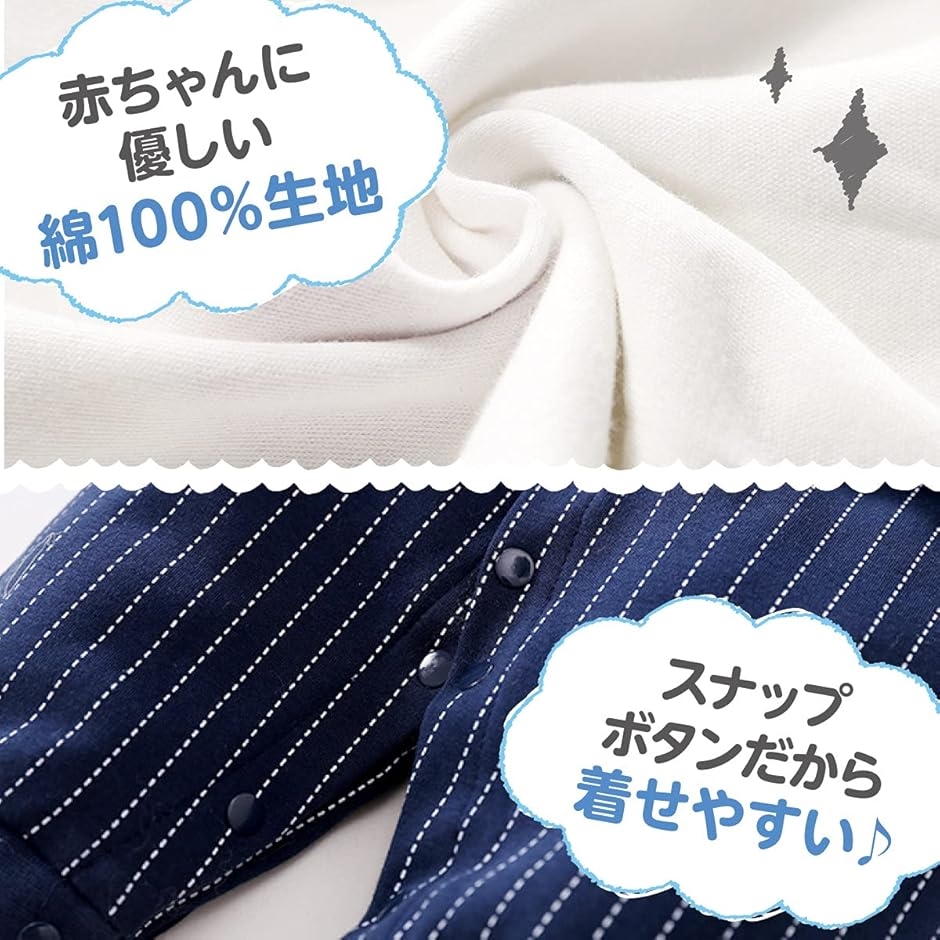 ・v「 やさしさ重視 」 赤ちゃんに優しい綿100%生地、柔らかい肌触りで伸縮性があるのでとても着やすいです。