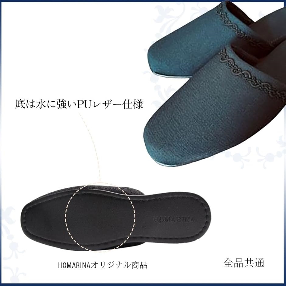 裏面はしっかりした防水ビニールレザー製なので、雨に濡れた廊下などでも気にせずご利用いただけます.*カラー:ブラック *種類:黒レース(他にも黒リボン、紺リボン、黒ブレード、紺ブレード、黒レースヒール、メンズスリッパがございます)*セット:サテン収納袋