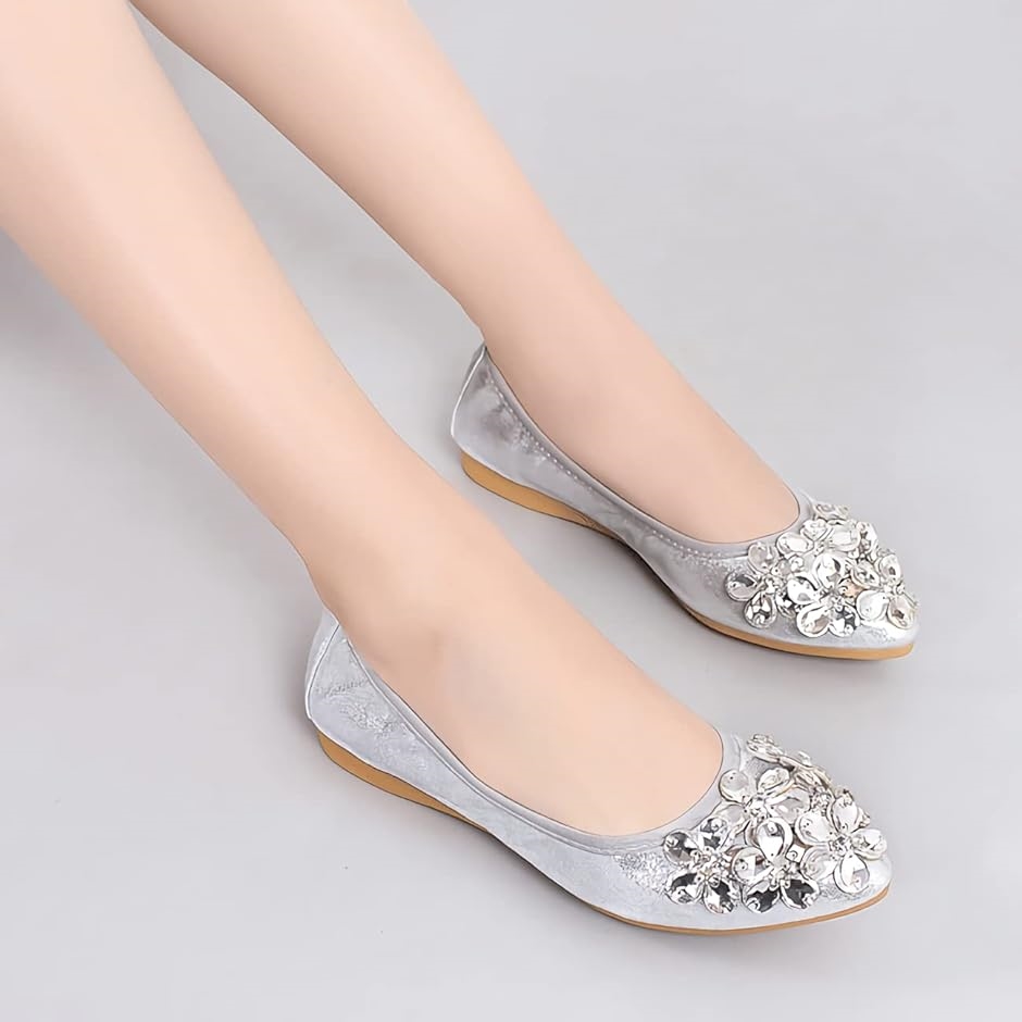 ビジューストーンが上品で、とっても可愛いぺたんこパンプスです。