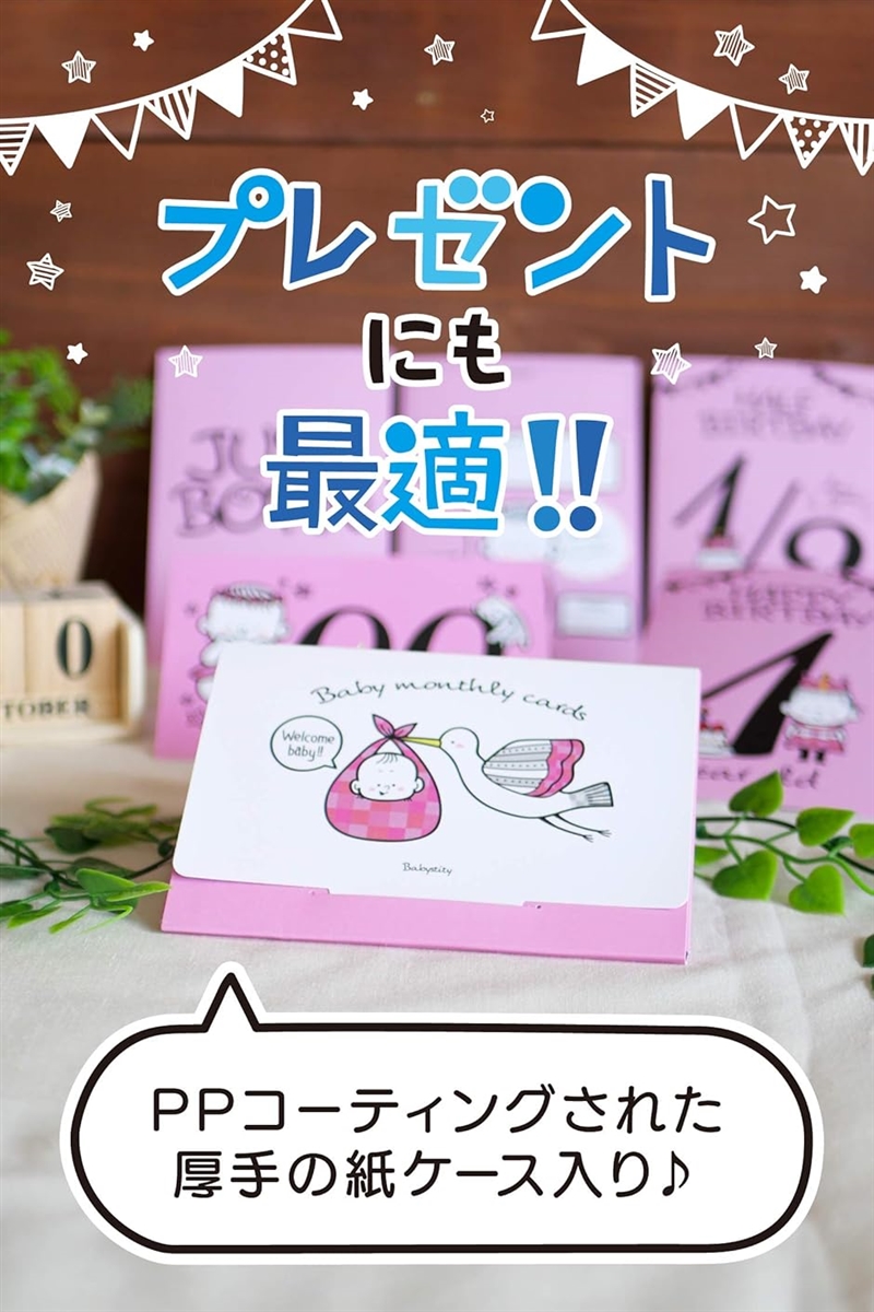 ・ただ赤ちゃん撮るだけじゃ、毎日の何気ない写真と同じになってしまいませんか? 毎月の記念日には、このカードと一緒に撮影して手軽に思い出の一枚を残しましょう。