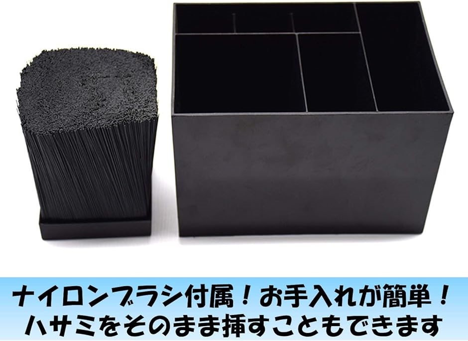 ポケットの一つにはナイロンブラシが入っており、ケースのお手入れやカット後の毛髪を掃うのに活用できます。