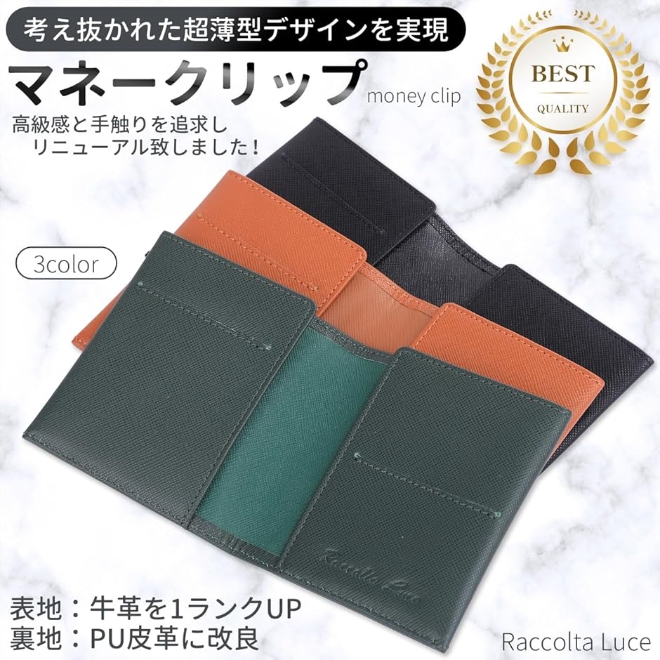 | 商品名 | マネークリップ 牛本革 レザー 軽量 薄型 8mm カード4枚収納可能 グリーン |