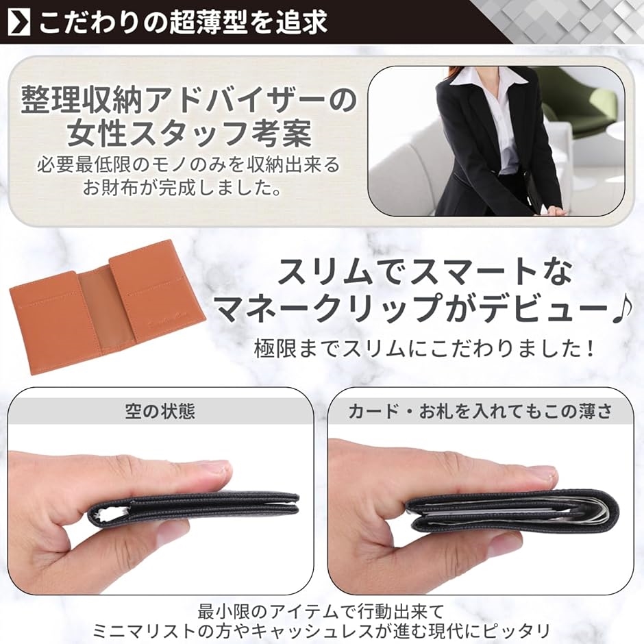 薄型にこだわりを持つ整理収納アドバイザーの女性スタッフ考案 ラコルテルーチェからスリムでスマートなマネークリップがデビュー。