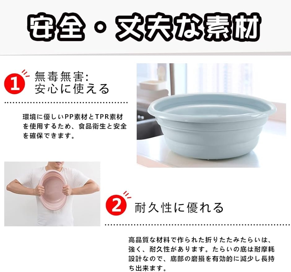 「様々なシーンに大活躍」洗濯、洗顔、足浴、掃除、収納、アウトドアなどに最適です。