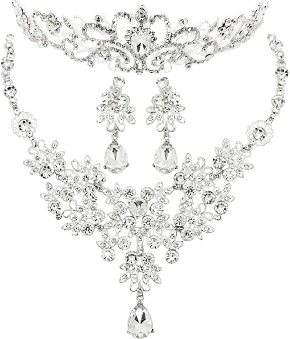 ・[A'sTool] ティアラ・ネックレス・耳飾り(ピアス/イヤリング) 3点セット 結婚式 ミスコン 等 ブライダル ジュエリー