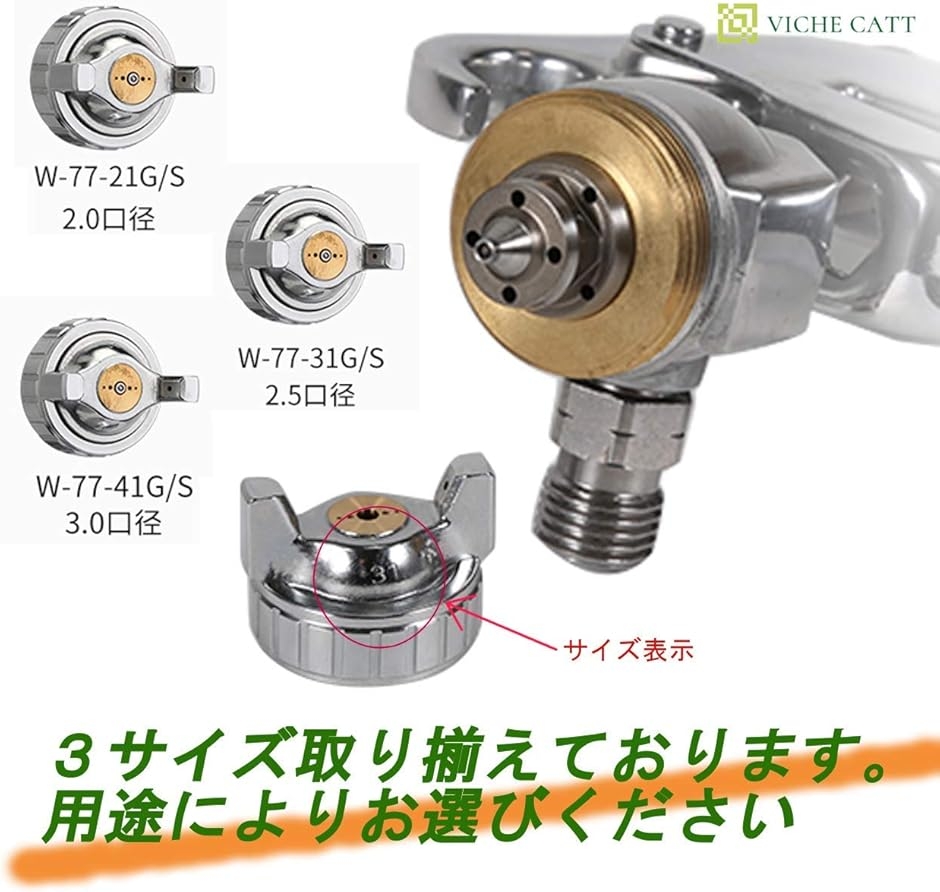 ・*W-77 重力式 エアー 中型 スプレーガン 口径(ノズル径)2.0〜3.0mm は、日本国内一般的なハイカプラーとなっております。