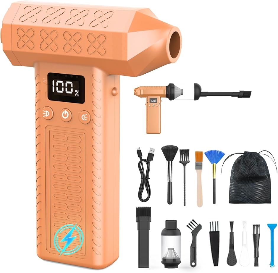 商品名 | 1台2役300000rpm電動エアダスター・15000paミニ掃除機・3段風量調整超強力 最大風速92m/s 小型 洗車ブロワー ハンディ掃除機 2個LEDライト付き LCDディスプレイ搭載 急速充電式 8000mAh 連続150分使用可能 超軽量 |