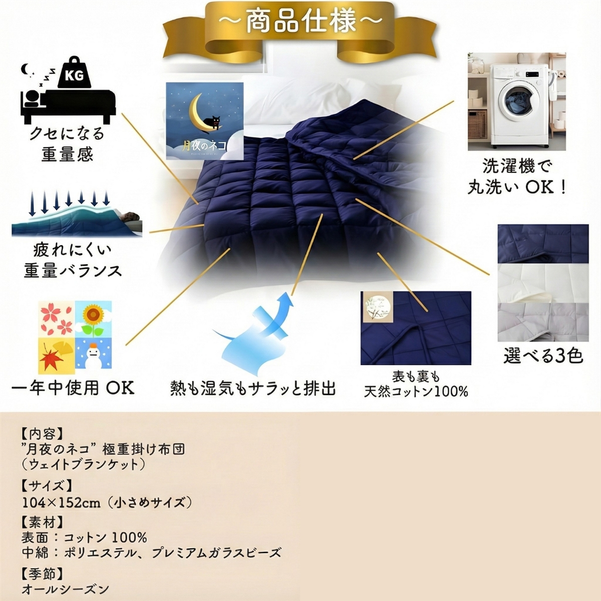「商品」掛け布団( ウェイトブランケット )「サイズ/重さ」小さめシングル(104x152cm)