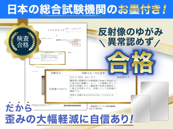 ほぼA3サイズ:縦43.0x横29.0x厚さ0.5cm、1枚あたり重さ約700g(鏡本体のみ)