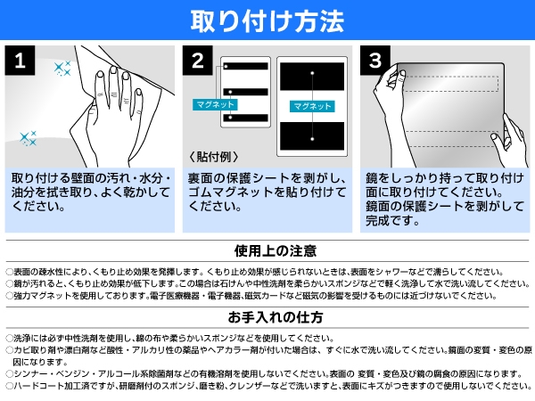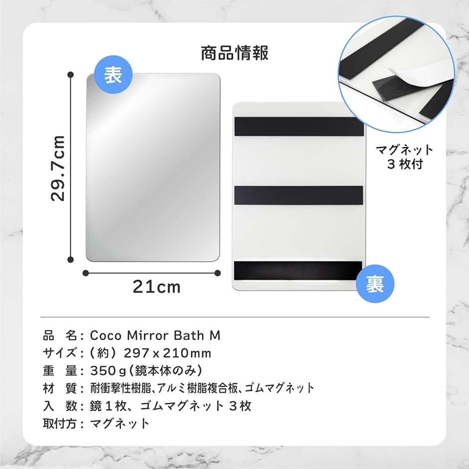 | 商品名 | 専門家監修/クリアな映像が魅力 浴室鏡 風呂 浴室 お風呂 鏡 お風呂鏡 くもらない 歪まない マグネット ミラー A4x1枚 |