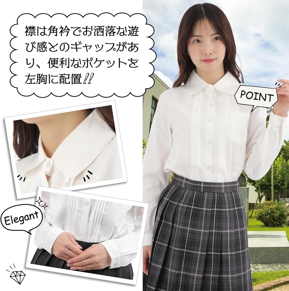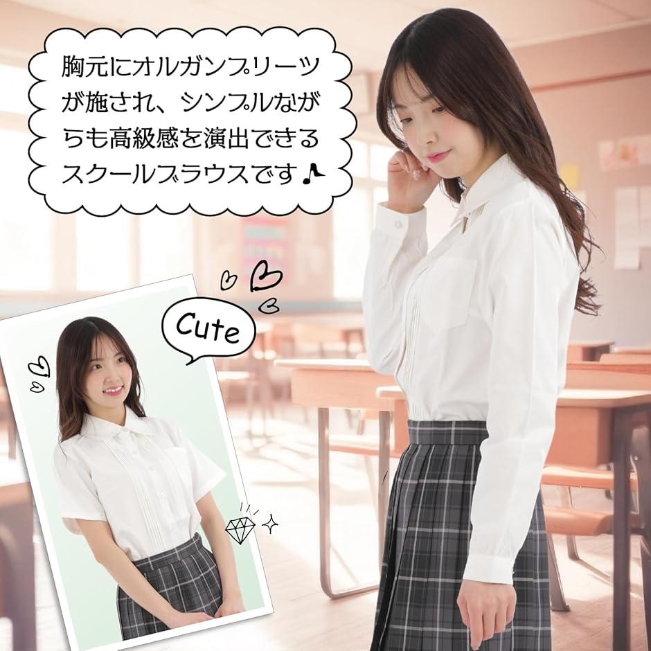 | 商品名 | スクールブラウス 制服 エレガント 女子 オルガン プリーツ ポケット付 シャツ e327 |