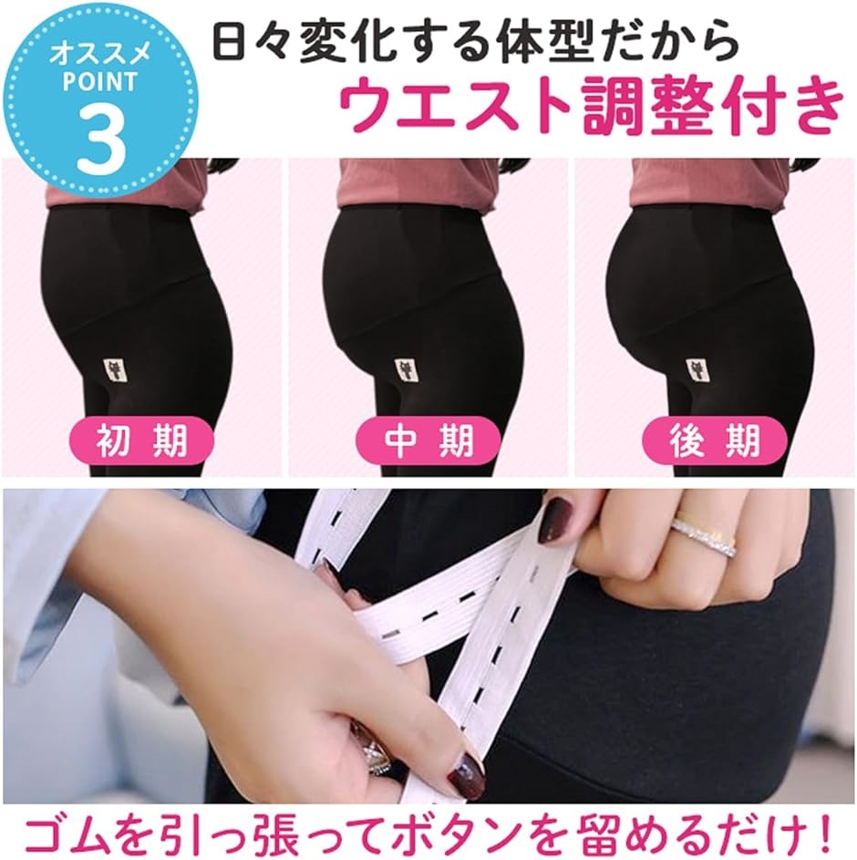 | 商品名 | マタニティレギンス 現役看護師監修 妊婦 用 スパッツ ウエスト調整可能 アジャスター付 産前 臨月 産後 ストレッチ素材 ストレッチ素材 |
