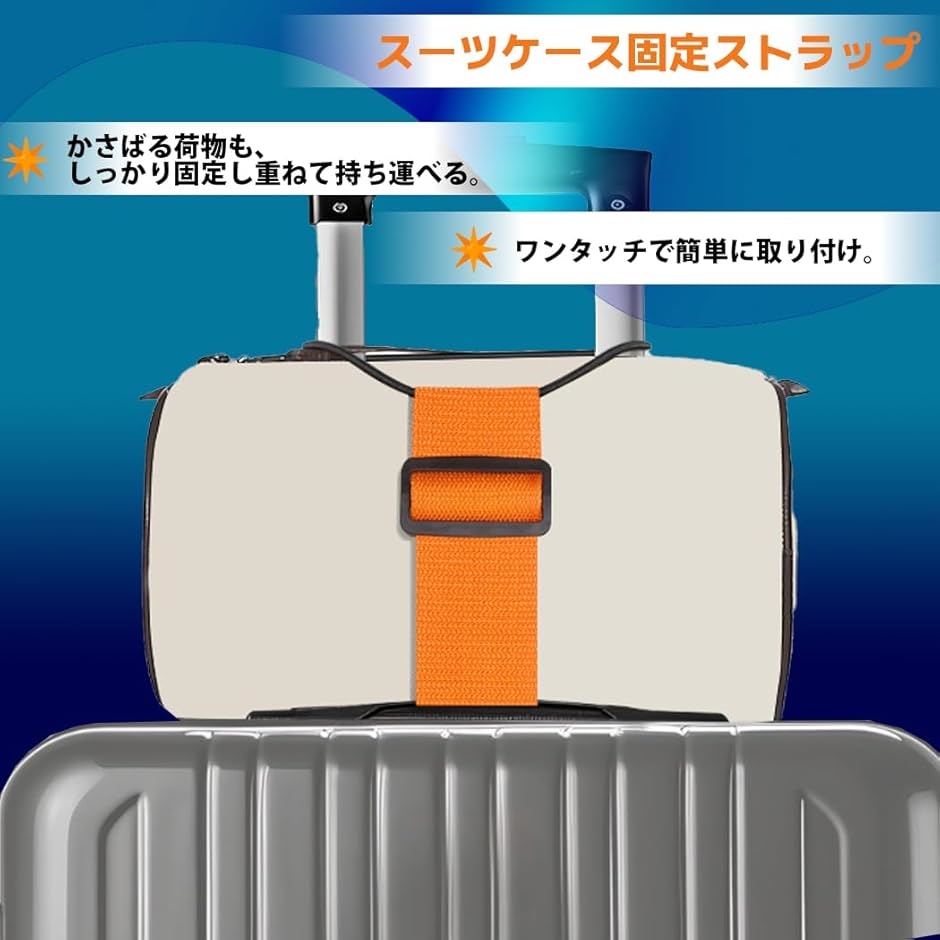 旅行や出張時にスーツケースの上に荷物を簡単かつ安全に固定できる便利グッズです。