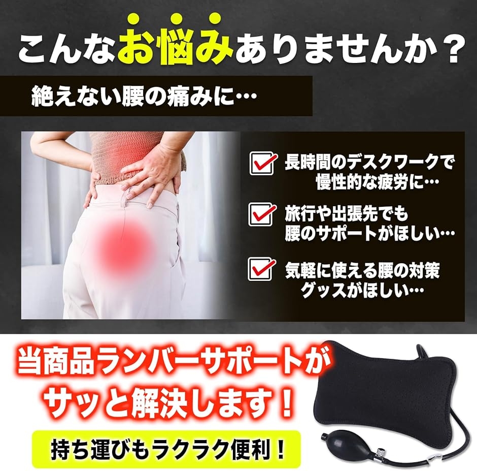 車内やオフィス、飛行機内など、どこでも手軽に使用できるため、腰枕としていつでもどこでも快適なサポートを受けられます。