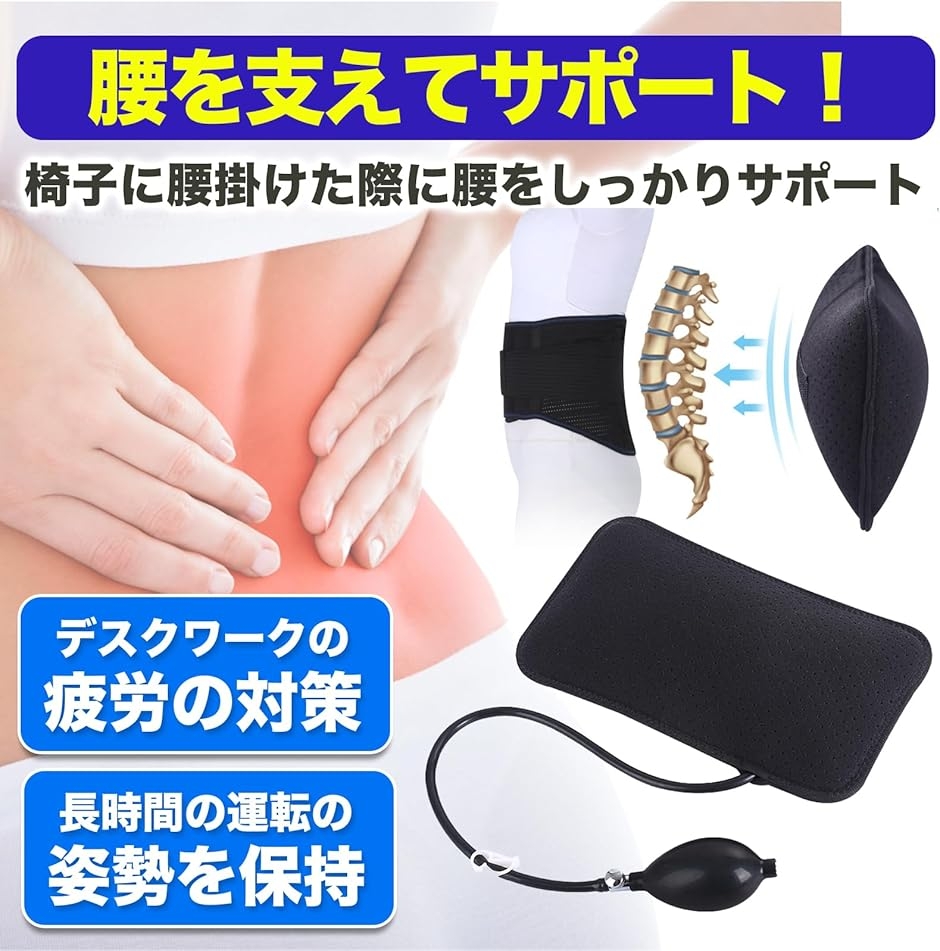 | 商品名 | MONOSTORE 汎用 ランバーサポート 椅子 クッション 腰枕 エアー 背もたれ エアークッション 腰 ピロー シートクッション サポートクッション 2個 |