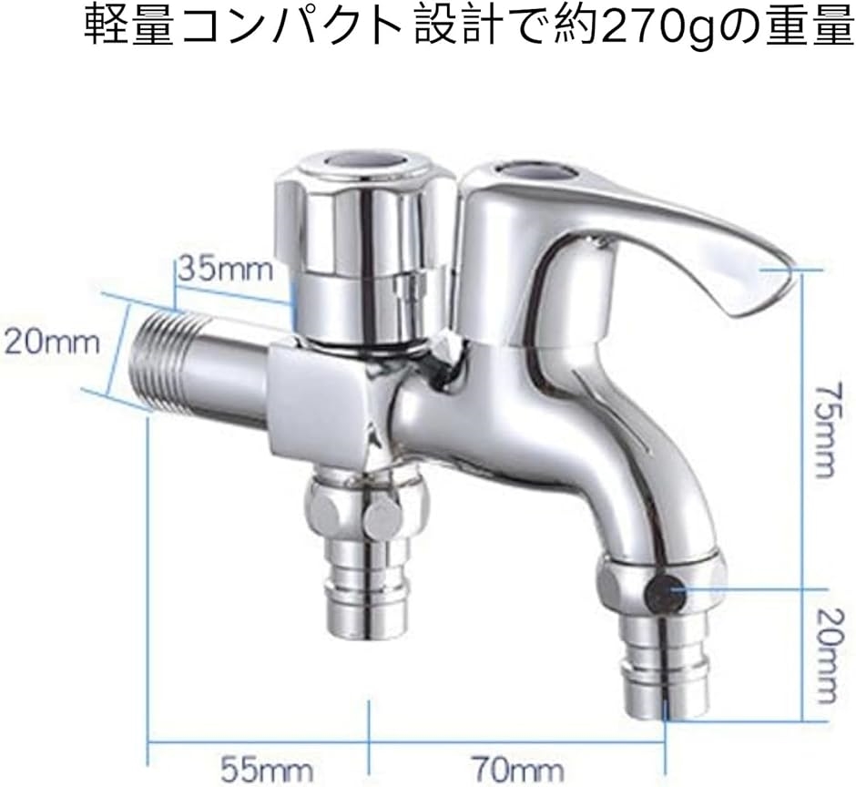 | 商品名 | HOTQ 二股蛇口 二口横水栓 双口水栓 蛇口 双口 ワンタッチ 洗濯機 ホース の付け替え不要 水道 分岐 屋外 切り替え 継手 |
