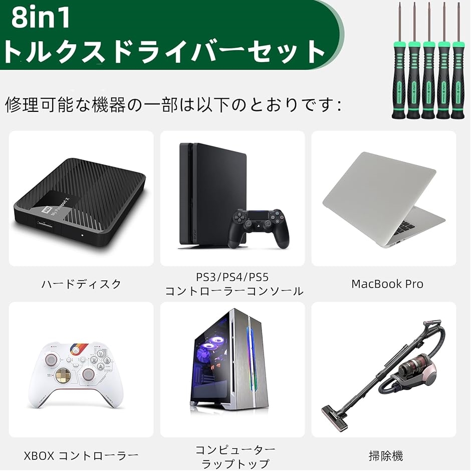 | 商品名 | トルクスドライバーセット 星型ドライバー セット T2 T3 T4 T5 T6 T8 T10 MID 磁石付き 精密ドライバー Xbox iPhone PS3 PS4 PS5 MacBook Watches Computers その他のデバイスの修理 |