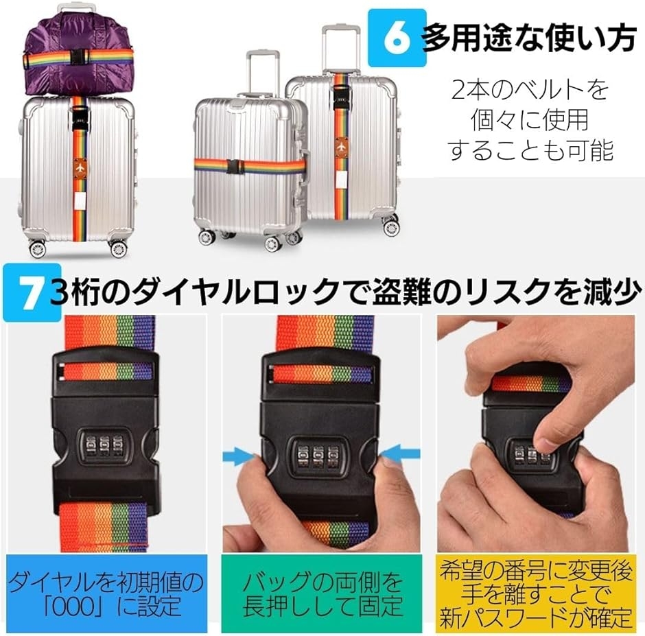 | 商品名 | スーツケースベルト 鍵付き 十字型 ダイヤルロック ネームタグ 2本セット |