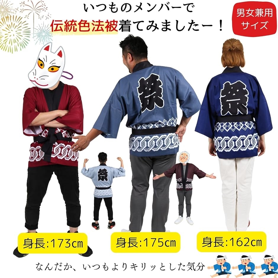 | 商品名 | 日本の伝統色 色を選べる はっぴ 法被 祭 腰ひも付き 男女兼用 つなぎ柄 イベント 行事 粋 クラシック レトロ おそろい コーデ 男性 女性 大人用 衣装 10101544 |